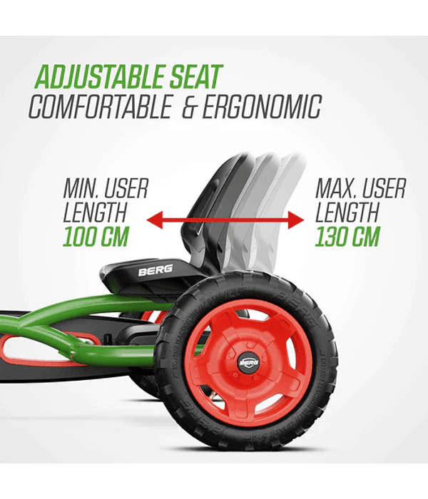 - Gracias al volante y el asiento regulables, el BERG Buddy crece contigo