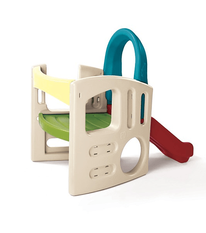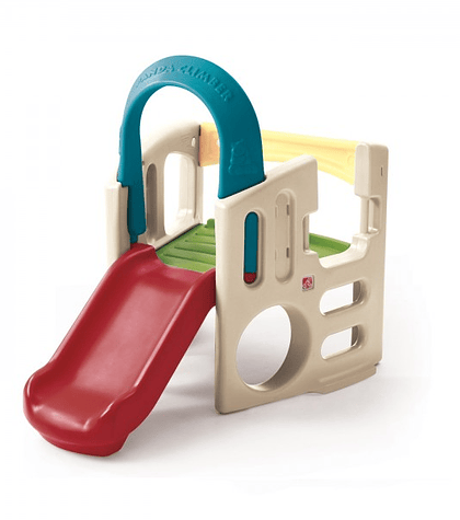 De plástico roto moldeado, esta casa permite el juego de varios niños y una larga duración.