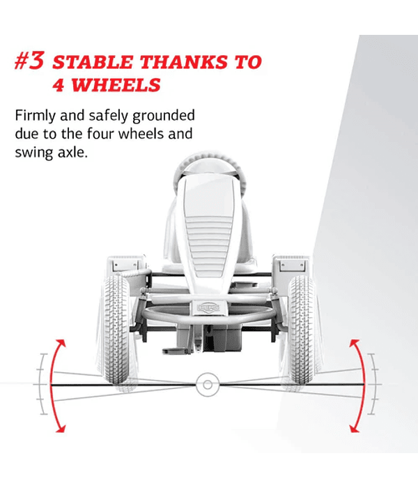 El clásico kart de pedales por el que Berg se hizo famoso, ha sido completamente rediseñado. Nunca eres demasiado mayor para el Súper. Puedes empezar a usarlo desde los cinco años e incluso a los adultos todavía les gusta montarlo.